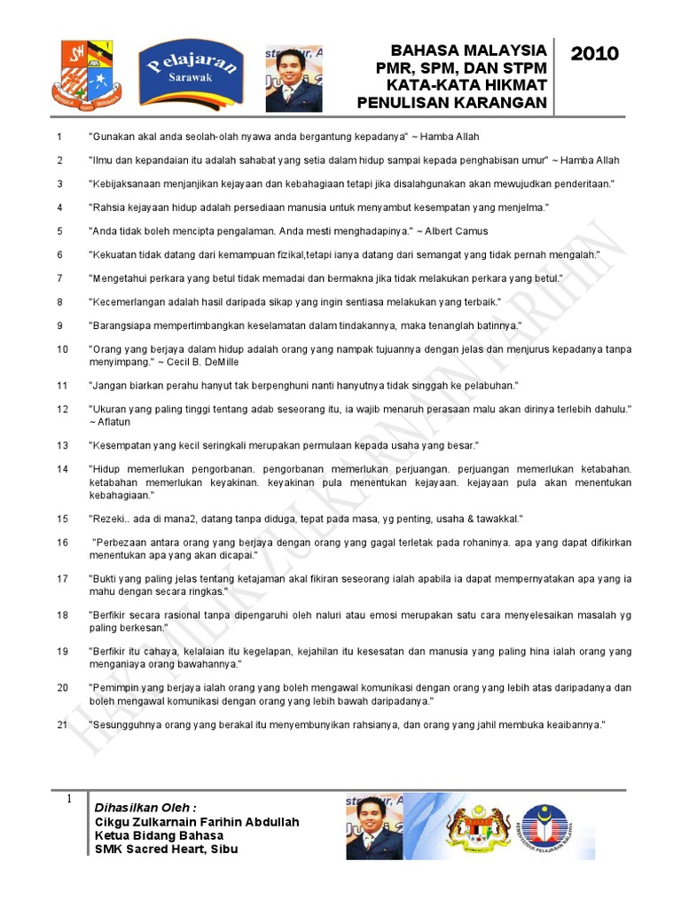 Peribahasa Kata Kata Hikmat Untuk Spm Karangan Pdf